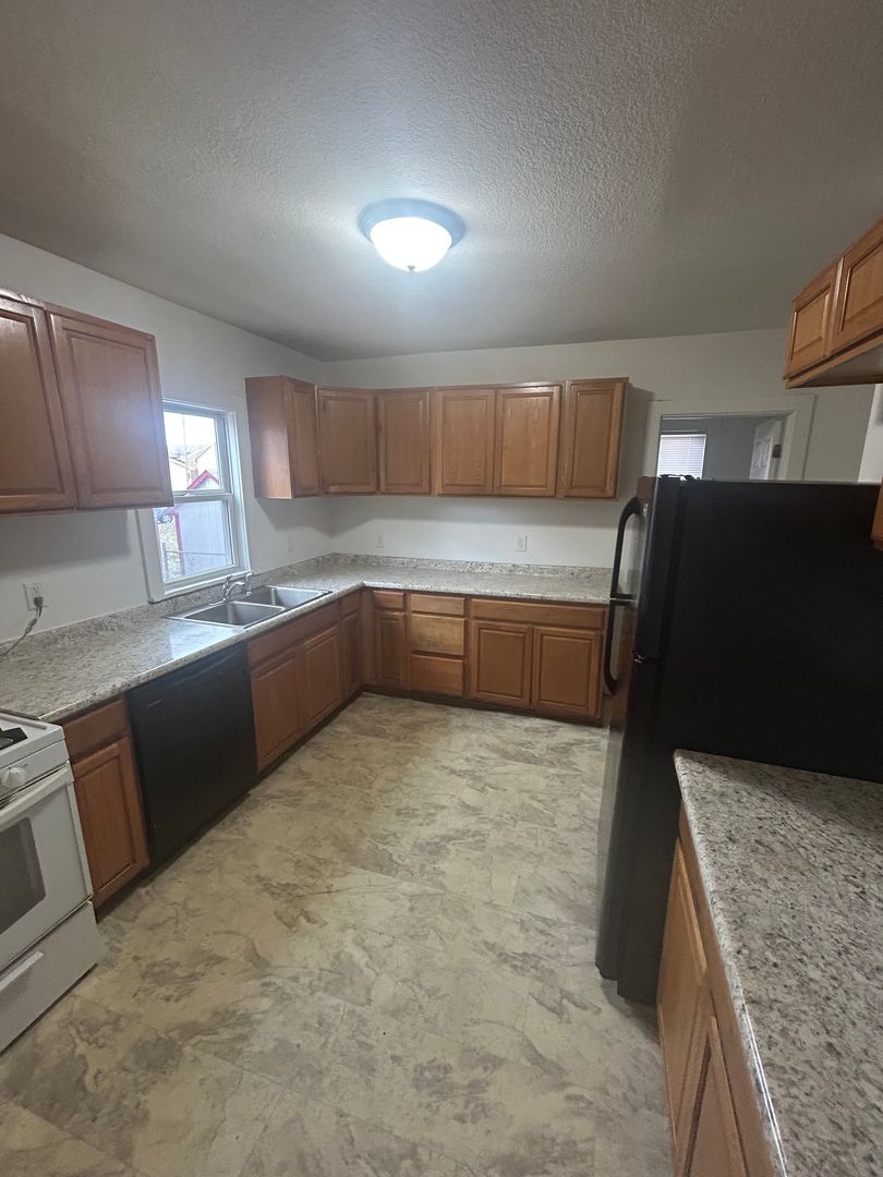 The spacious kitchen is designed for both everyday living and effortless entertaining, featuring generous counter space, a gas stove, and a dishwasher for added convenience. Laundry hookups make daily routines simple and efficient.
