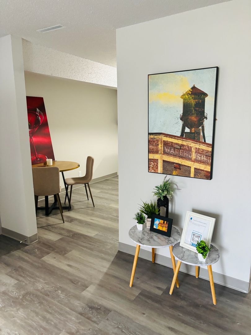 We have just one unit in this completely renovated building! These units have balconies, dishwashers, central air, high end LVP and are finished off nicely. The main bedroom can easily fit a queen size bed and these come with two storage closet areas! Your main living space has ample room to serve as a living dining area if you choose!