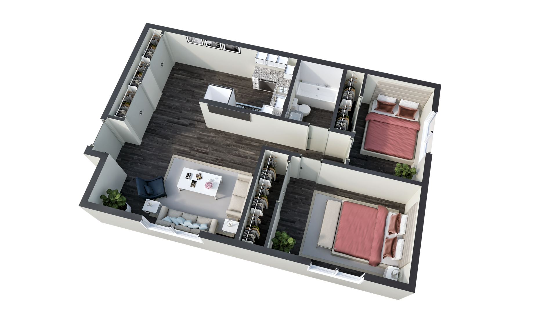 Each 2 bedroom unit offers: